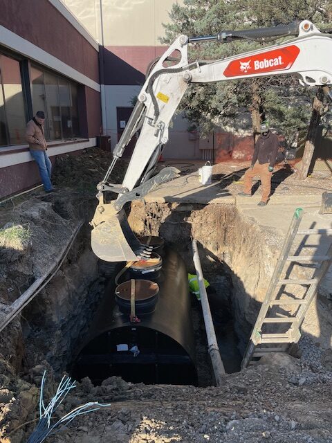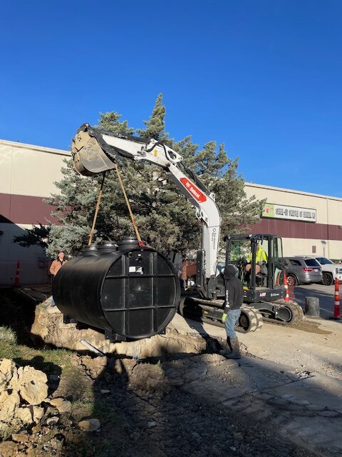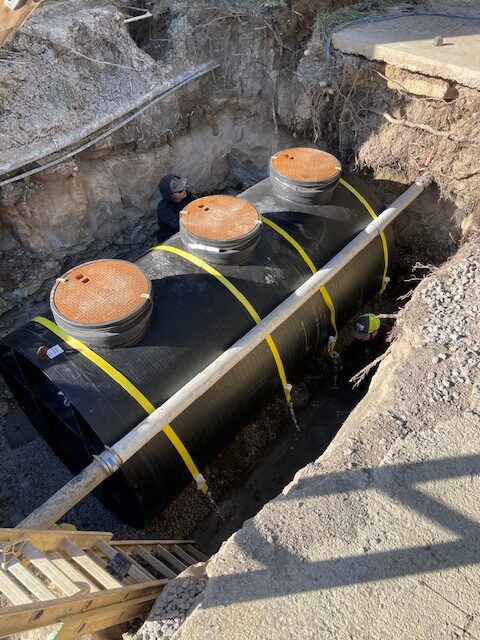 Installation hit a snag when excavation shifted slightly from the original tank footprint, revealing nearly six feet of solid Kansas limestone. Although this obstacle delayed the project, once excavation was complete, the contractor resumed work quickly. The OT-1500 was installed and backfilled using a compact backhoe, following Striem’s Installation, Operation, and Maintenance (IOM) manual.